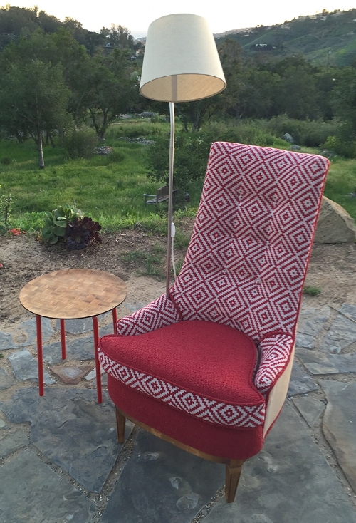 The Modern Ruby Arm Chair is a funky twist to your regular ole hum-drum reading chair. Because this chair comes complete with a reading lamp rising out of the arm! Modern geometric fabric adds the touch of design.